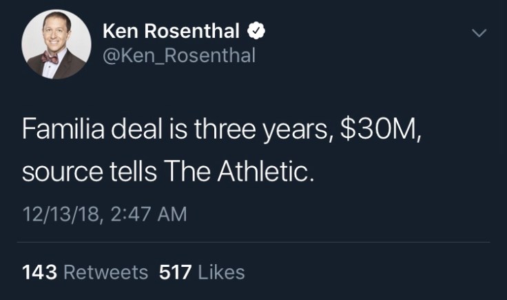 I am so happy that Familia is back and it’s on a pretty good deal. The thing that sucks tho, the Winter Meeting have to be held in Vegas and this deal happened at 3 in the morning for me. There had to be 0 Mets fans awake to see this news. I woke up 45 minutes, looking at my phone all shocked not expecting this.