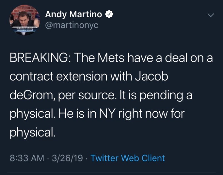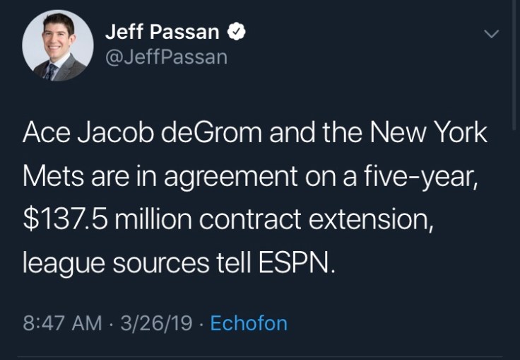 We finally did it. The Mets actually do something right and we signed Jacob deGrom. After Syndergaard was heckling the Mets to give him the contract, the Mets plane to Syracuse so they can open up the Triple A team was delayed multiple hours all hope was lost for the team. With all this bad shit happening days before the start of the season I thought we were toast already. But giving the God damn best pitcher in the MLB his damn money is the only thing the Mets could do right now.